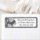 Unas etiquetas de dirección monocromáticas para el amante moderno del perro. Una silueta de raza gris se alza delante de una huella de pata plateada, con un fondo chillón.