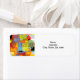 Esta etiqueta de dirección de retorno tiene un diseño Bauhaus con tiras horizontales de color y formas superpuestas colocadas en la parte superior. ¡Colorido, atrevido, divertido!
