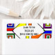 Estas etiquetas de dirección de retorno tienen un diseño Bauhaus de líneas, triángulos, diamantes y cuadrados que hacen un aspecto de vidrio manchado en colores primarios y secundarios.