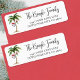 Add a tropical and festive touch to your holiday mail with this whimsical return address label sticker featuring a watercolor palm tree on the left side, decorated with twinkling holiday lights and a few hanging stockings. A soft hint of beach sand grounds the scene, adding a relaxed coastal vibe.