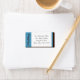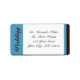 Custom printed return wedding address labels designed in blue and brown, and "wedding" printed vertically on the left.