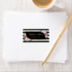 Elegantes etiquetas de dirección florales a rayas en negro y blanco con flores rosadas y vegetación enmarcando la dirección dentro de un marco dorado. Artículos coincidentes disponibles.