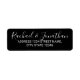 Etiqueta moderna de la dirección de retorno de Boda blanco y negro con el nombre de la novia y el novio en el elegante tipo de letra y dirección de caligrafía en el estilo moderno de letra sans serif.