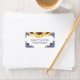 Etiquetas de dirección de boda florales azules marinas rústicas con girasoles, luces de cuerda y delicado encaje floral.