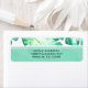 Etiqueta Boda de hojas tropicales verdes y blancas de playa