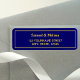 Elegante etiqueta de dirección de retorno en azul y oro.