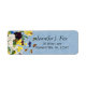Etiqueta de dirección de devolución elegante y personalizable Boho con bonitos y coloridos pensamientos primaverales femeninos, narcisos y mariposas sobre un fondo victoriano azul pálido vintage.