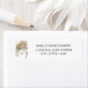 Etiquetas con un ramo de flores de bonito en colores neutros de marrón, melocotón y naranja. Un soñador con plumas añade un elegante toque místico.