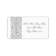 Etiquetas de dirección con un bonito borde de remolino de plata sobre un fondo blanco. Estas hermosas etiquetas de dirección de regreso con borde de plata se personalizan fácilmente con tus datos en el estilo y color de fuente que elijas. También puedes cambiar el color del fondo.