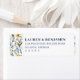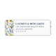 Estas etiquetas de dirección de devolución presentan un encantador diseño floral de acuarela con tonos vibrantes de amarillo, azul, morado y verde. La composición está elegantemente equilibrada, enmarcando el texto central con bordes verticales de margaritas, nomeolvides y flores variadas. Con una estética romántica e invitante, estas etiquetas son perfectas para ocasiones formales como bodas o aniversarios, añadiendo un toque de belleza inspirada en la naturaleza a tus sobres.