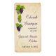 Una vid con cuatro racimos de uva de vino se alinean a lo largo del lado izquierdo de esta etiqueta. La vid serpentea detrás de las uvas con un fondo pergamino. Una gran etiqueta para usar en un regalo especial de vino o en un boda. Disponible con productos a juego y una orientación horizontal.