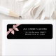 Etiquetas de dirección de retorno de la ducha de novia de fondo negro rosado.