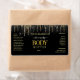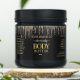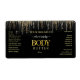 Etiquetas de manteca de oro negro con estilo profesional con tipografía de guiones y goteo de purpurina de oro