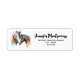 Etiquetas de dirección con un hermoso dibujo de acuarela. Con una pareja de caballos, marrón y blanco. Cabeza y cuello visibles con pintura goteando a lo largo de la base de su cuello. Vibra del suroeste.