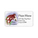 Una hermosa mancha pintaba acedera sobre la cabeza de un caballo de pintura estadounidense con una corona y las palabras "Feliz Navidad". Personalizar con sus Navidades personales saludando.