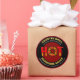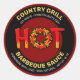 Caliente con la letra O hecha de un círculo de llama con pimientos de chile. Color de fondo personalizado. Cuatro campos de texto a personalizar.
