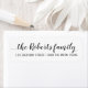 Diseño rectangular sencillo con nombre familiar y dirección de retorno en letra caligráfica moderna. Personaliza fácilmente con tu apellido y dirección.