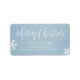Los Navidades personalizados devuelven las etiquetas de dirección con caligrafía escrita a mano en blanco con escritura "feliz Navidad" y copos de nieve con fondo de textura azul invernal, simple, moderno y elegante.