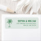 These return address labels feature a minimalist design with a light green background and a delicate line art illustration of a palm tree. The layout is clean, with ample negative space that highlights the simple elegance of the design. Bold, uppercase sans-serif typography ensures clarity and readability for your names and address, while maintaining a modern aesthetic. Perfect for those who appreciate understated style, these labels convey a serene and sophisticated mood, ideal for personal correspondence or special occasions.