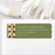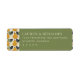 These return address labels feature a modern, minimalist design with a split layout. The left side showcases a charming pattern of stylized yellow pears on a cream background, while the right side is a solid olive green with clean, centered serif typography for easy customization. The muted color palette and simple illustrations create an elegant and calming aesthetic, perfect for formal occasions or everyday use. The straightforward representation style ensures clarity and sophistication in every detail.