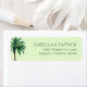 These return address labels feature a minimalist design with a single, vibrant palm tree illustration on the left side, set against a soft pastel green background. The clean layout includes elegant serif typography for your custom text, arranged in a centered alignment to maintain clarity and readability. The overall style is tropical and serene, evoking a sense of relaxation and sophistication perfect for adding a touch of elegance to your mailings. Ideal for those who appreciate simple yet stylish designs, these labels are great for personal correspondence or special occasions.