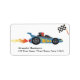 Un diseño divertido con un coche de carreras azules y una bandera a cuadros. Personalizar por cumpleaños o cualquier ocasión. Elementos de coordinación disponibles.