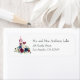 Etiquetas de dirección para cata de vinos con acuarela que presentan peonías y rosas de color azul marino, blanco y rojo burdeos.