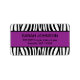 Una elegante etiqueta de dirección de retorno de patrón de cebra morado y negro.