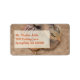 Esta etiqueta de dirección fácil de personalizar muestra una fotografía de un bebé lindo con plumas suaves de color beige y marrón.