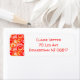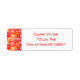 Estas etiquetas de dirección de retorno tienen un diseño de círculos decorados con líneas y círculos hechos de puntos repetitivos en rojo y naranja.