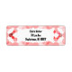 Estas etiquetas de dirección de retorno tienen un diseño geométrico de círculos concéntricos en tonos rojos formando dos cuadrados sobre un campo de blanco.