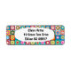 Estas etiquetas de dirección de retorno tienen un diseño inspirado en Kandinsky de círculos concéntricos en muchos colores diferentes que se repiten a lo largo del diseño.