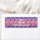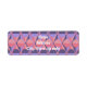 Estas etiquetas de dirección de retorno tienen un diseño art deco de dos tonificantes círculos rosados y púrpura dentro de triángulos rosados y morados de dos tonalidades.