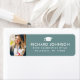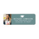 Elegante etiqueta de la dirección de retorno de la graduación en blanco Foto con un gorro verde de grado y el nombre y dirección del graduado en moderno .