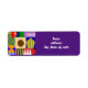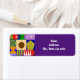 Estas etiquetas de dirección devueltas tienen un diseño Bauhaus de formas y líneas que hacen un collage en colores primarios y secundarios.