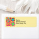 El tejido original combina bloques de tejido favoritos y bloques únicos para formar un diseño de 4 bloques de tejido con colores vivos y dinámicos de amarillo, rosa, rojo, naranja, verde limón y turquesa sobre un fondo amarillo. Agregue su dirección de devolución si está utilizando esta etiqueta para una etiqueta de dirección de devolución u otras palabras si utiliza como etiqueta. Es una buena forma de mostrar tu amor por el tejido y los tejidos y hacer un regalo para los amantes de los edredones o los edredones. Totalmente personalizable y personalizable. El arte quilt es de la diseñadora de tejidos y tejidos Phyllis Dobbs y se encuentra en una colección de tejidos de Quilting Treasures. Hay otros productos para empresas con este arte de colcha disponibles en la tienda de Zazzle de Phyllis BusinessWithFlair.