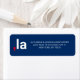 La pronunciación de la coma La kamala graciosa tipografía moderna blanco rojo y azul patriótico Etiquetas de dirección de retorno. Tipografía moderna en rojo y blanco sobre fondo de color editable en azul.