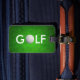 Etiqueta con clase del equipaje del golf