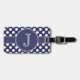 Modelo de lunar de los azules marinos y del blanco con una raya a juego y medallón redondo para que usted personalice con su inicial con monograma. Añada su texto de la información o del personalizado en la parte de atrás de la etiqueta del equipaje.