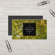 Una elegante plantilla de tarjeta de visita con un panel negro cuadrado de 1,3 pulgadas en la parte delantera. Nombre y tipo de negocio/título del trabajo en el panel frontal. El Nombre se crea en dos líneas en mayúsculas y un espacio adicional entre cada letra que da un bonito aspecto de diseño de alta calidad. El panel cuadrado también está decorado con dos motivos rectangulares que han sido creados usando uno de los símbolos útiles de Zazzle. Los datos de correo electrónico, web, dirección y telefonía están bien distribuidos en el reverso de la tarjeta con un fondo gris oscuro. Esta tarjeta también se puede personalizar más. Esta plantilla también está disponible en una variedad de estilos diferentes, algunos con fondos de color plano y fondos de imagen. También disponible con diferentes paneles de color.