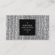 Una elegante plantilla de tarjeta de visita con un panel negro cuadrado de 1,3 pulgadas en la parte delantera. Nombre y tipo de negocio/título del trabajo en el panel frontal. El Nombre se crea en dos líneas en mayúsculas y un espacio adicional entre cada letra que da un bonito aspecto de diseño de alta calidad. El panel cuadrado también está decorado con dos motivos rectangulares que han sido creados usando uno de los símbolos útiles de Zazzle. Los datos de correo electrónico, web, dirección y telefonía están bien distribuidos en el reverso de la tarjeta con un fondo gris oscuro. Esta tarjeta también se puede personalizar más. Esta plantilla también está disponible en una variedad de estilos diferentes, algunos con fondos de color plano y fondos de imagen. También disponible con diferentes paneles de color.