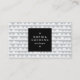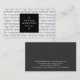 Una elegante plantilla de tarjeta de visita con un panel negro cuadrado de 1,3 pulgadas en la parte delantera. Nombre y tipo de negocio/título del trabajo en el panel frontal. El Nombre se crea en dos líneas en mayúsculas y un espacio adicional entre cada letra que da un bonito aspecto de diseño de alta calidad. El panel cuadrado también está decorado con dos motivos rectangulares que han sido creados usando uno de los símbolos útiles de Zazzle. Los datos de correo electrónico, web, dirección y telefonía están bien distribuidos en el reverso de la tarjeta con un fondo gris oscuro. Esta tarjeta también se puede personalizar más. Esta plantilla también está disponible en una variedad de estilos diferentes, algunos con fondos de color plano y fondos de imagen. También disponible con diferentes paneles de color.