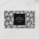 Una elegante plantilla de tarjeta de visita con un panel negro cuadrado de 1,3 pulgadas en la parte delantera. Nombre y tipo de negocio/título del trabajo en el panel frontal. El Nombre se crea en dos líneas en mayúsculas y un espacio adicional entre cada letra que da un bonito aspecto de diseño de alta calidad. El panel cuadrado también está decorado con dos motivos rectangulares que han sido creados usando uno de los símbolos útiles de Zazzle. Los datos de correo electrónico, web, dirección y telefonía están bien distribuidos en el reverso de la tarjeta con un fondo gris oscuro. Esta tarjeta también se puede personalizar más. Esta plantilla también está disponible en una variedad de estilos diferentes, algunos con fondos de color plano y fondos de imagen. También disponible con diferentes paneles de color.