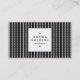 Una elegante plantilla de tarjeta de visita con un panel negro cuadrado de 1,3 pulgadas en la parte delantera. Nombre y tipo de negocio/título del trabajo en el panel frontal. El Nombre se crea en dos líneas en mayúsculas y un espacio adicional entre cada letra que da un bonito aspecto de diseño de alta calidad. El panel cuadrado también está decorado con dos motivos rectangulares que han sido creados usando uno de los símbolos útiles de Zazzle. Los datos de correo electrónico, web, dirección y telefonía están bien distribuidos en el reverso de la tarjeta con un fondo gris oscuro. Esta tarjeta también se puede personalizar más. Esta plantilla también está disponible en una variedad de estilos diferentes, algunos con fondos de color plano y fondos de imagen. También disponible con diferentes paneles de color.