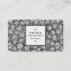 Una elegante plantilla de tarjeta de visita con un cuadrado de 1,3 pulgadas y un panel blanco de doble contorno negro en la parte delantera. Nombre y tipo de negocio/título del trabajo en el panel frontal. El Nombre se crea en dos líneas en mayúsculas y un espacio adicional entre cada letra que da un bonito aspecto de diseño de alta calidad. El panel cuadrado también está decorado con dos motivos rectangulares que han sido creados usando uno de los símbolos útiles de Zazzle. Los datos de correo electrónico, web, dirección y telefonía están bien distribuidos en el reverso de la tarjeta con un fondo gris oscuro. Esta tarjeta también se puede personalizar más. Esta plantilla también está disponible en una variedad de estilos diferentes, algunos con fondos de color plano y fondos de imagen. También disponible con diferentes paneles de color.