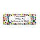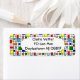 Estas etiquetas de dirección de retorno tienen un diseño Bauhaus de una cuadrícula con cuadrados y rectángulos en rojo, verde, azul, naranja, azul claro, amarillo y rojo.