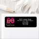 Etiquetas de dirección de retorno de cumpleaños número 50 y fabuloso con tipografía blanca, dorada y rosa sobre fondo negro. La dirección está centrada horizontal y verticalmente hasta 6 líneas. Ideal para celebraciones de cumpleaños glamorosas. Suministros para fiestas a juego disponibles.