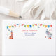 Add a charming finishing touch to your party mail with this watercolor circus return address label. Featuring adorable carnival animals, colorful bunting flags, and festive confetti, this whimsical design is perfect for a three-ring circus themed birthday celebration. A cute and coordinated way to decorate envelopes, party invitations, and thank you notes.