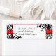 Magnífico damasco negro sobre un fondo blanco puro con una cinta roja falsa y marco con elementos florales en esquina. Perfecto para un boda formal, compromiso o aniversario.