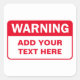 Etiqueta de advertencia roja con texto de personalizable.